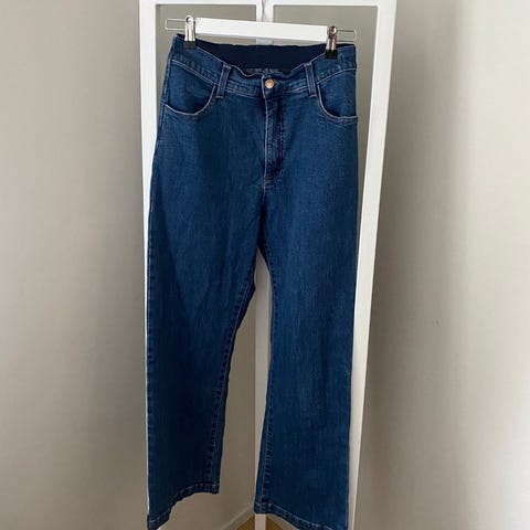 Erinomaisessa kunnossa olevat Gauharin hieman vajaamittaiset farkut joustavalla vyötäröllä. Jäänyt itsellä käyttämättä. Vyötärö venyttämättä n. 33 cm, mutta joustaa.