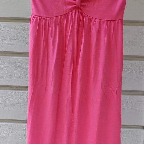 Käyttämätön lyhyt röyhelömekko. Nyörikiinnitys selässä, joilla saa säädettyä olkaimia ja mekon kireyttä. Herttainen kukkakuosi, kevyt materiaali.