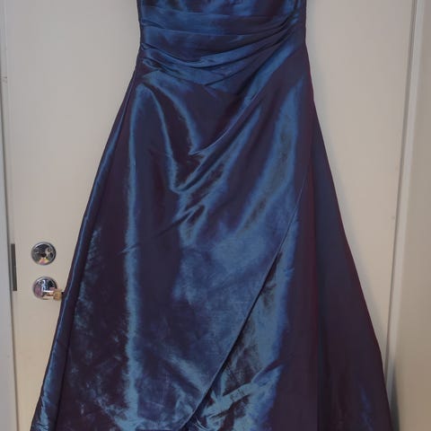 Juhlapuku, väriltään sininen, kokona 34. Mekossa on pitsikoristelu yläosassa ja hihnalliset olkaimet. Todella kaunis.