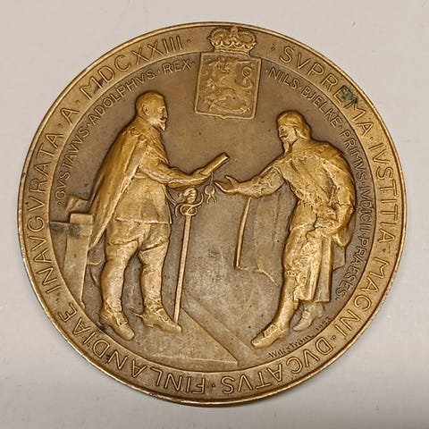 Nils Bielken mitali, lyöty Turun hovioikeuden 300-vuotisjuhlan kunniaksi vuonna 1923.