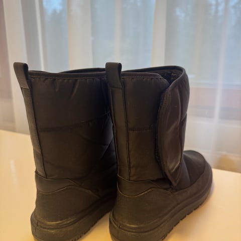 Myydään nuorten talvisaappaat joissa lämmin vuori ja pinta mustaa mokkanahkaa. Kengät ovat olleet jalassa vain muutamia kertoja ennen kuin jäivät pieneksi. Tässä lämpöiset ja tyylikkäät kengät talveen jotka sopivat myös vaikka hameen kanssa siistimmiksi kengiksi mutta ovat myös lämpimät ja mukavat jalassa. Valmistettu Italiassa.