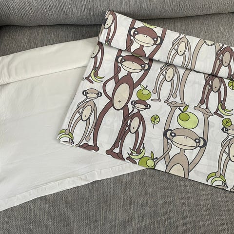 Setti joka sopii pinnasänkyyn. Pesty ilman hajusteita.