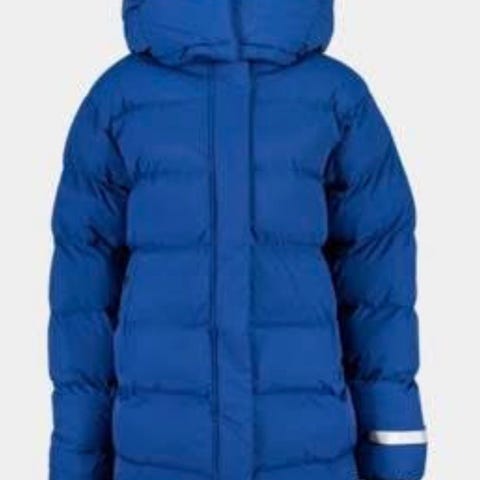 Todella lämmin, kaunis kirkkaan sininen väri. Täyte on muhkeaa untuvankaltaista High Loft - eristettä. Pitää vettä ja tuulta. Hihojen heijastimet saa käännettyä piiloon. Takkia on käytetty vain pari kertaa viime talvena, joten se on uudenveroinen.