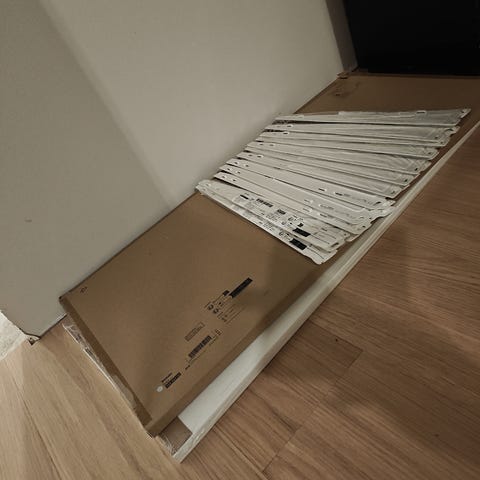 Rungot vielä avaamattomissa pakkauksissa.