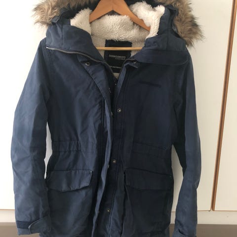 Didriksons Ronja tummansininen parkatakki / talvitakki, jossa kaunis oliivinvihreä vuori