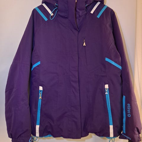 Etirel laskettelutakki naisten mallistosta, koko 36. Väri musta-valkoinen. Laadukas, vedenpitävä takki, lumilukot ja tarvittavat taskut löytyvät. Käytetty kerran laskettelureissulla, nyt jäänyt pieneksi. Ostettu Intersportista.