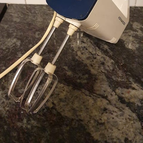 Kenwoodin sähkövatkain vispilä- ja taikinakoukkupäillä. Kuin uusi.