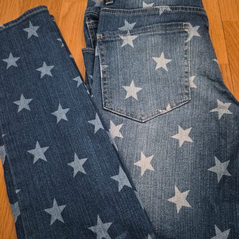 Mukavat ja joustavat farkut, joissa kiristys lahkeissa. Koko 170. Hyvä kunto