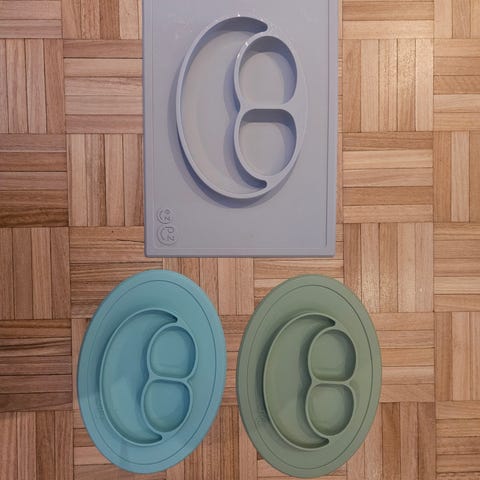 Myydään settinä meille uutena tulleet ja yhden lapsen mummolakäytöstä Ezpz tummanharmaa ruokailualusta ja 2 kpl Emma mukia. Toinen normaali nokkamuki ja toinen "taikamuki", jolla lapsi voi opetella juomista. Siistit ja hyväkuntoiset. Hinta setille 10 euroa. Nouto Pöykkölästä.