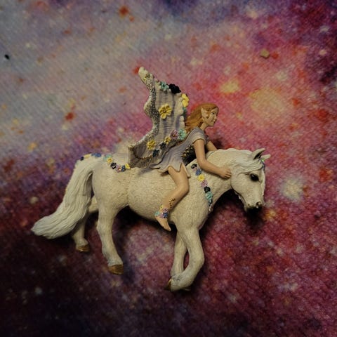 Myyntiin lelupaljoudesta Schleich Bayala-sarjan Feya keiju ja hevonen. Hevosessa on tarkkaan katsoessa muutama tumma naarmu. Keiju taas on joutunut taisteluun örkkejä vastaan ja on melko huonossa kunnossa. Tämä setti myyntiin hevosen hinnalla. Saa myös tarjota.