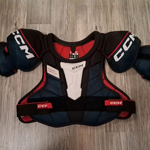 Juniorille jääkiekkoon. Sopii noin 104-122 cm pitkälle. Ollut meillä käytössä 6-7-vuotiaalla. Ehjä ja hyväkuntoinen. Tarrat on pitäneet.