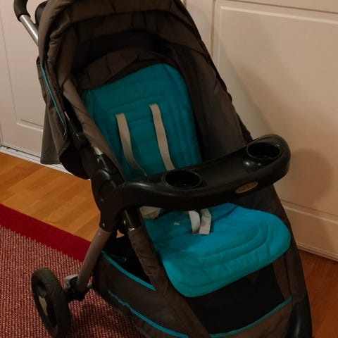 Graco matkarattaat, musta/harmaa väri, saa tiputettua kokoon sekä ylös yhdellä kädellä. Tähän sai päälle lukittua myös gracon turvakaukalon (meneekö nykyiset, en tiedä). Mukitelineen saa halutessaan irroitettua. Selkänojan saa makuuasentoon. Lukitus on. Kevyet. Kääntyvät eturenkaat.