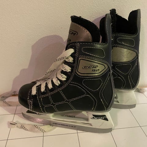 Hyväkuntoiset käytetyt luistimet. Ainut moite kärjissä kulumaa muttei käyttöön vaikuttavaa. Pohjallisen mitta 21,5cm.