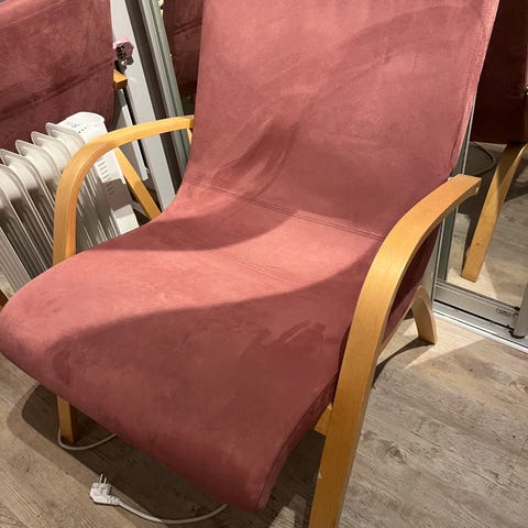Entiset mustat nykyiset harmahtavat nojatuolit, joissa on metallirunko ja pehmustettu istuin sekä selkänoja. Istuimet ovat pehmeitä ja tarjoavat mukavuutta. Sopivat olohuoneeseen tai muihin oleskelutiloihin. Ehjät, mutta väri haalistunut auringossa.