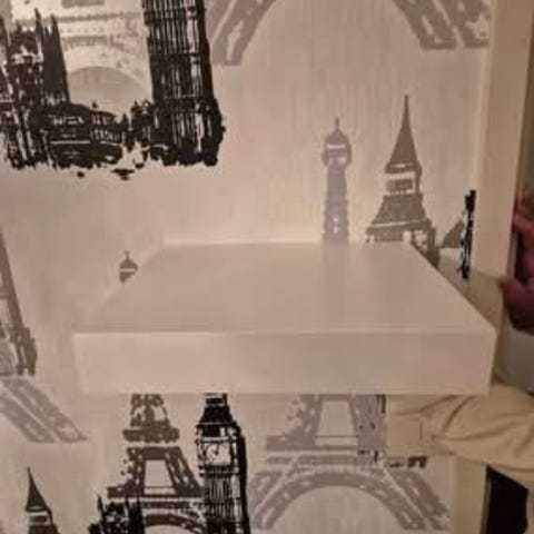 Valkoinen pinta erittäin hyvässä kunnossa. Hyllykannatin kuuluu mukaan ja näkyy kuvassa.