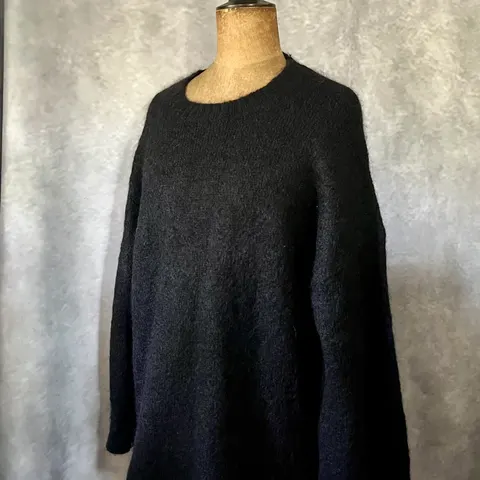 Lindexin lämmin ja pehmoinen oversize neule villa-mohairsekoitetta. Väri on kaunis vaaleanvihreä. Kainalo-kainalo -mitta 67 cm, olka-helma takaa noin 68 cm, edestä vähän lyhyempi.