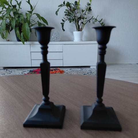 Kaksi kynttilänjalkaan isommille kynttilöille.