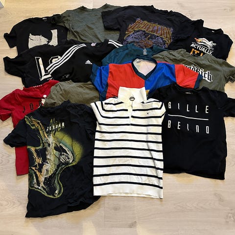 9 erinlaista hupparia tai college paitaa. Osa merkkivaatteita Nike, Calvin Klein, Burton.