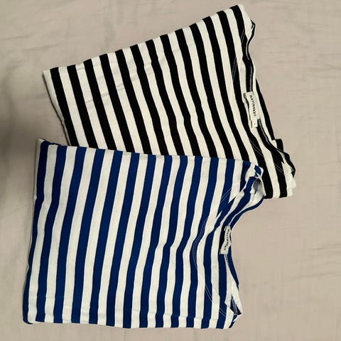 Marimekon mustavalkoinen T-paita (koko S) Räsymatto-kuosilla. Nouto Töölöstä.