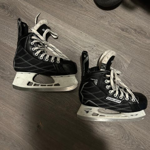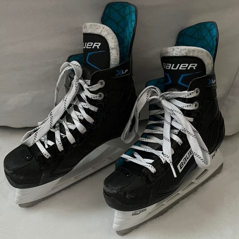 Kuvan Bauerin hokkarit, kokomerkintä puuttuu mutta se on n. 36. Sisäpohjan mitta on n. 22,5-23 cm. Mukaan step-in teräsuojat. Kärjissä kulumaa.