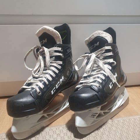 CCM E10 jääkiekko luistimet lasten koossa 37. Luistimet ovat musta-harmaat ja suunniteltu jääkiekon harrastamiseen.