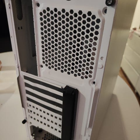 Tarpeettomaksi jäänyt Fujitsu pöytätietokone. Kiintolevy poistettu, muuten täysin toimiva laite.