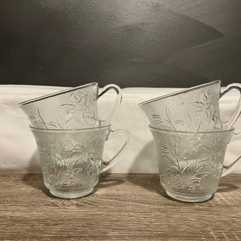 Mukista löytyy tietoa haulla ”Vintage Fire King Red-Orange diamond-pineapple "Kimberley" pattern Coffee Cups - Anchor Hocking”