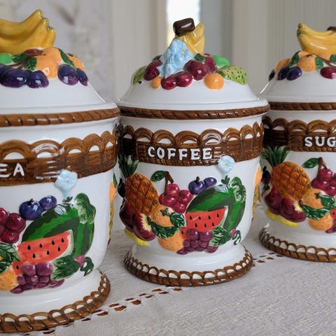 2kpl setti, oranssi ja keltainen muki. Vähän exotica-tyyliä. Kunto hyvä käytetty, pientä käytössä tullutta naarmua maalissa. Jonkinlaista keramiikkaa, en osaa sanoa materiaalista muuta.