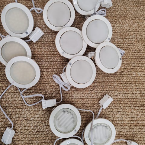Yhden remontin aikana käytössä olleet valot, kahteen saa lampun mukana.