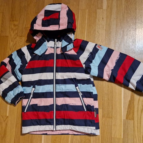 Reiman lämmin, tummansininen talvitakki, koko 128cm. Takissa on irroitettava karvahuppu. Ollut käytössä yhdellä pojalla. Toiseen taskuun tullut vähän kulumaa(kuva), mutta muuten siistissä kunnossa.