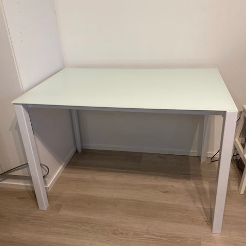 Pieni lasipöytä. Korkeus 42, leveys 40.