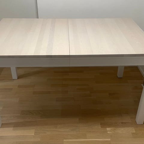 Pöydän mukaan tulee lasilevy, joka on ollut koko ajan ruokapöydän päällä, joten pöydän pinta on edelleen kuin uusi. Pöydän jaloissa on kuitenkin jonkin verran naarmuja (näkyy kuvissa).