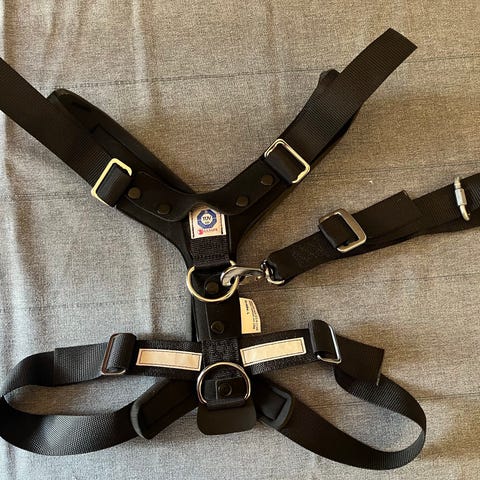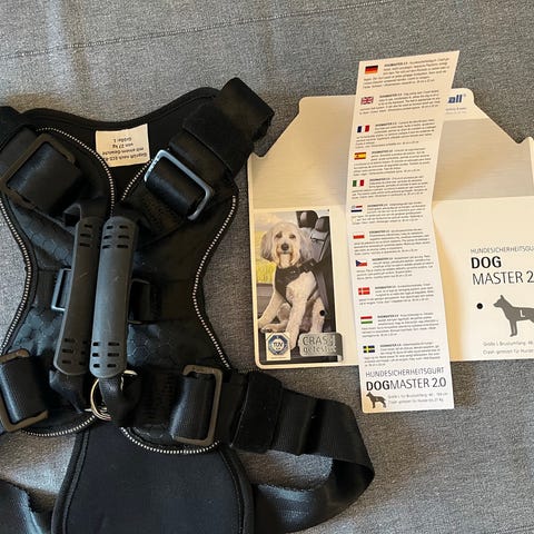Kurgon törmäystestatut turvavyövaljaat, koko L (paino 23-36 kg). Käytetty paljon, mutta vielä hyvässä kunnossa. Sopivat myös talutusvaljaiksi, kiinnityslenkki hihnalle myös edessä. Rintakappaleessa on kaksi kiinnitysmahdollisuutta mahavyölle koiran rinnan pituuden mukaan.