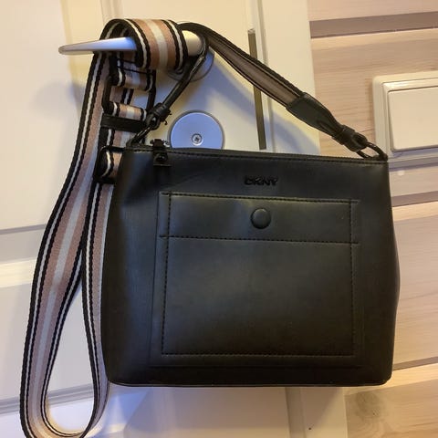 DKNY nahkainen naisten laukku mustana. Laukussa on musta ulkopinta ja sisäpuoli, jossa on DKNY-tekstiä. Laukkuun kuuluu myös irrotettava pieni pussukka. Sopii arkipäivän käyttöön ja eri tilaisuuksiin. Kuin uusi!