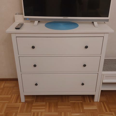 Myydään valkoinen Ikea Malm lipasto. Mukana päälle erikseen ostettu lasikansi. Käytön jälkeä laatikoissa näkyvissä mutta on ehjä ja siisti.