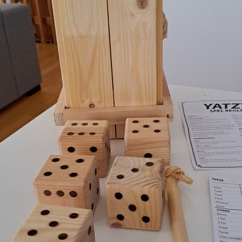 Perinteinen Yatzy-peli, jossa tavoitteena on saada täytettyä pistelomake mahdollisimman tehokkaasti heittämällä erilaisia yhdistelmiä nopilla.