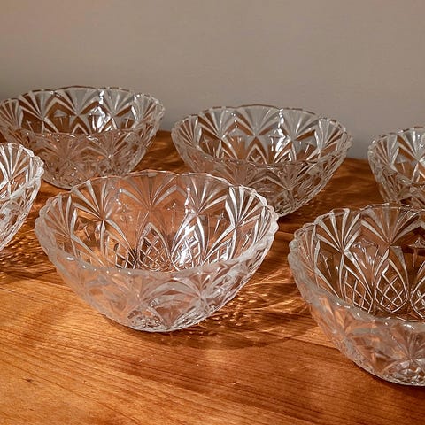 RCR Cristalleria Italianan Luxion -ekokristalliset jälkiruokakulhot, 6 kpl. Käyttämättömät alkuperäisessä laatikossa. Valmistettu kristallista. Sopii esimerkiksi jälkiruokien tarjoiluun.