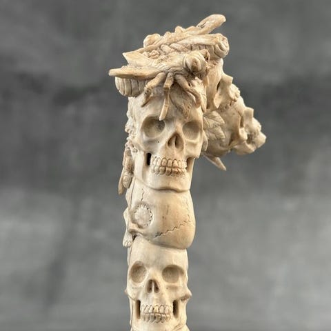Kaiverrus, A Grim Reaper Carving from a Deer Antler on a custom stand - 21 cm -
