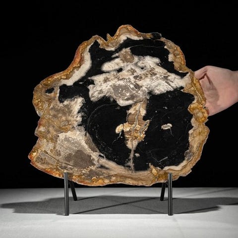 Upea kivettyneen puun viipale räätälöidyllä jalustalla.