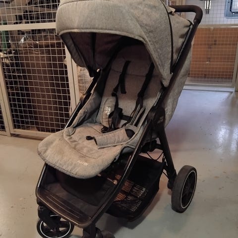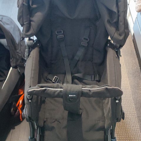 BRIO lastenrattaat (matka) musta väri, varustettu turvavaljailla ja säädettävällä selkänojalla. Sopii lapsen kuljetukseen erilaisissa olosuhteissa. Hihnan toinen suojus hävinnyt.