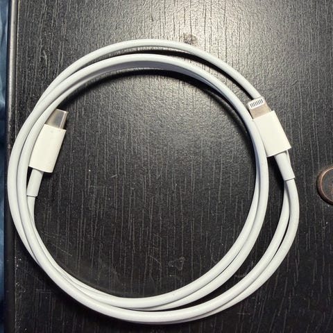 Se on jokseenkin uusi, muttei liian vanha. Myyn, koska minulla on muita pikalatureita. Valkoinen punottu kaapeli on alkuperäinen, joka tuli edellisen puhelimeni mukana, ja valkoinen Lightning-kaapeli myös, mutta kuin uusi, ja annan sen pois ilmaiseksi, joten ei kompromisseja, mutta hinta on silti kohtuullinen.