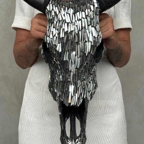 Ei lähtöhintaa - upea lehmän pääkallo lasimosaiikkikoristeella - kulta-must