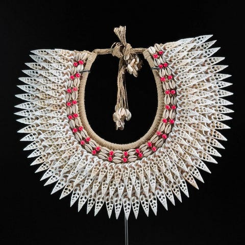 Simpukaketju telineessä, Papua-Uusi-Guineasta.
