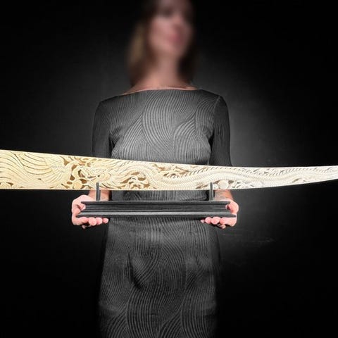 - Koska kyseessä on luonnollinen tusk, siinä saattaa olla joitakin luonnollisia pieniä halkeamia ja uurteita. Tämä on normaalia. Katso kuvat ohjeeksi.