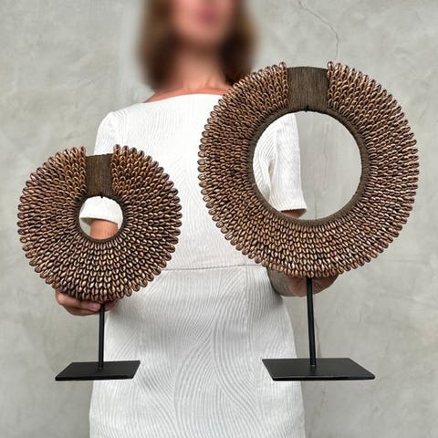 Seria alkuperäiskansojen kaulakoruja, jotka on tehty nassa-kivistä. TOLAÏ-kansa, Uusi Britannia, Papua-Uusi-Guinea. Kaulakorut sisältävät satoja pieniä nassa-kiviä. Merkittävää on, että lähes kaikki niistä ovat saman kokoisia, mikä antaa niille erittäin sileän, primitiivisen muodon.