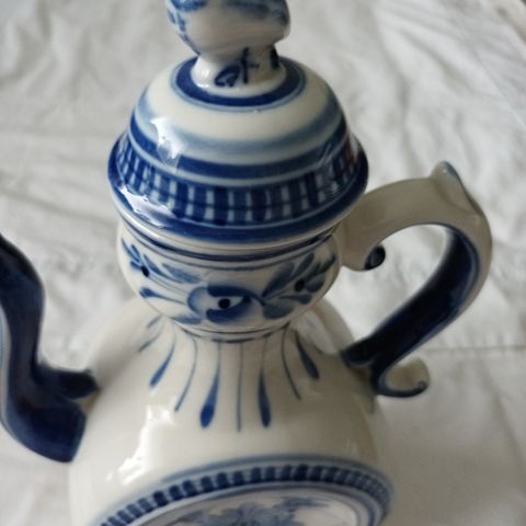 Longwy-teekannu kannella – Fajanssiastia cloisonné-koristelulla, tyyliteltyjä kukka-aiheita turkoosin, valkoisen ja sinapinkeltaisen sävyissä hienolla halkeilevalla pohjalla. Kannussa on kulmikas, tukeva kahva ja hieman ylöspäin viettävä kaatonokka, viimeistelty intensiivisen koboltinsinisillä reunoilla ja nupilla kannessa. Korkeus noin 14 cm. Valmistettu faïenceries et emaux de Longwyssa, Ranskassa, noin vuosina 1925–1930. Longwy saavutti kansainvälistä mainetta 1920–1930-luvuilla cloisonné-tekniikallaan, jossa koholasitteet levitetään ja täytetty kontrastivärisillä emaleilla. Tämä teos edustaa tehtaan geometrisesti tyyliteltyä art deco -tuotantoa sotien välisenä aikana ja on muodoltaan ja sisustukseltaan samanlainen kuin D 5278-koristelukoodilla varustetut astiat.