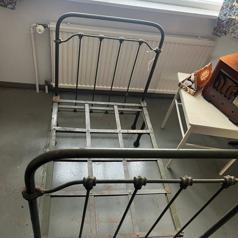 Vanha valkoinen antiikkinen jatkettava lastensänky