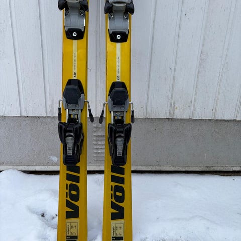 Myydään 130cm pituiset Volkl RTM laskettelusukset MARKERIN 4,5 siteillä.