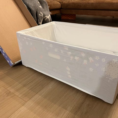 Äitiyspakkauslaatikko ja patja. Nouto Metsokankaalta.