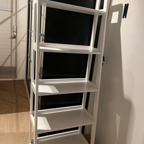 Myydään valkoinen Ikean malliston avohylly. Siirrettävät hyllytasot. Koristeellinen yläosa. Korkeus 180cm, syvyys 30 cm, leveys 70 cm.